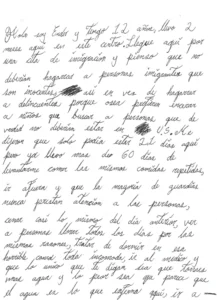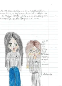 “Hello I am Ender and I am 12 years old, I have been at this center for 2 months. I arrived here for an immigration appointment and I don’t think they should grab immigrants who are innocent, like instead of grabbing criminals because I mean they prefer to lock up children than look for people who really shouldn’t be in the U.S. They told me I could only be here 21 days but I have already spent more than 60 days waking up eating the same repetitive meals, going outside and that the majority of guards never pay attention to people, eating dinner always the same as the day before, seeing people cry every day for the same reasons, trying to sleep in that horrible uncomfortable bed, going to the doctor and that the only thing they tell you is to drink more water and the worst thing is that it seems like the water is what makes people sick here, going to wait for the bad answers from the judges, hearing the bad news from people who no longer have hope, having to share a room with minimum 3 families, and all that so they send us back to our countries.”